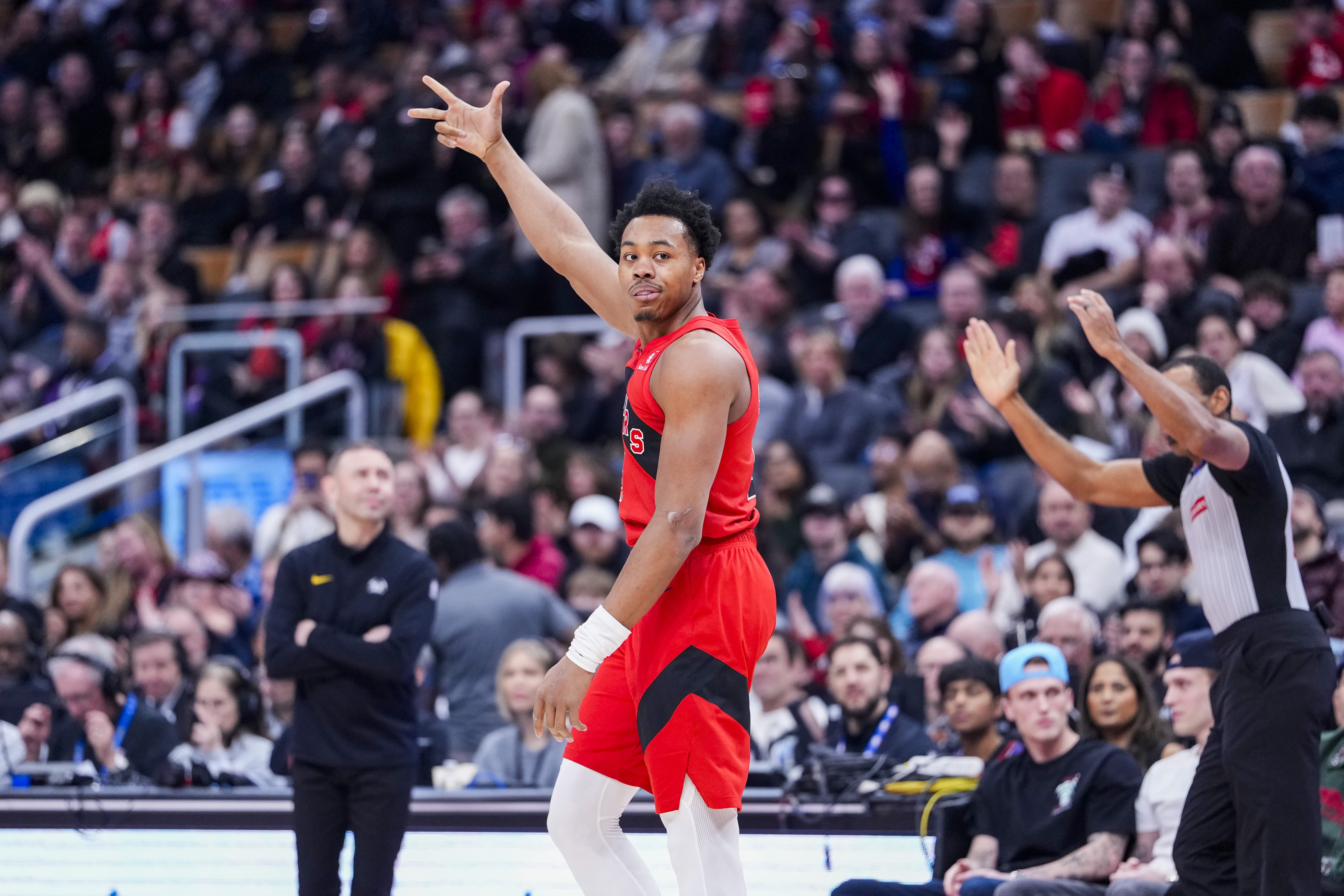 虽然奎克利的爆发占据了赛后的头条版面,但真正让比赛走向失控的,是猛龙深厚的阵容深度。格雷迪·迪克命中两记三分贡献10分,贾马尔·谢德送出8次助攻,而布兰登·英格拉姆则从容地寻找战机,高效砍下22分。甚至连猛龙的替补席也发挥出色,桑德罗·马穆凯拉什维利在仅出场26分钟的情况下,就高效砍下14分和12个篮板的两双数据。